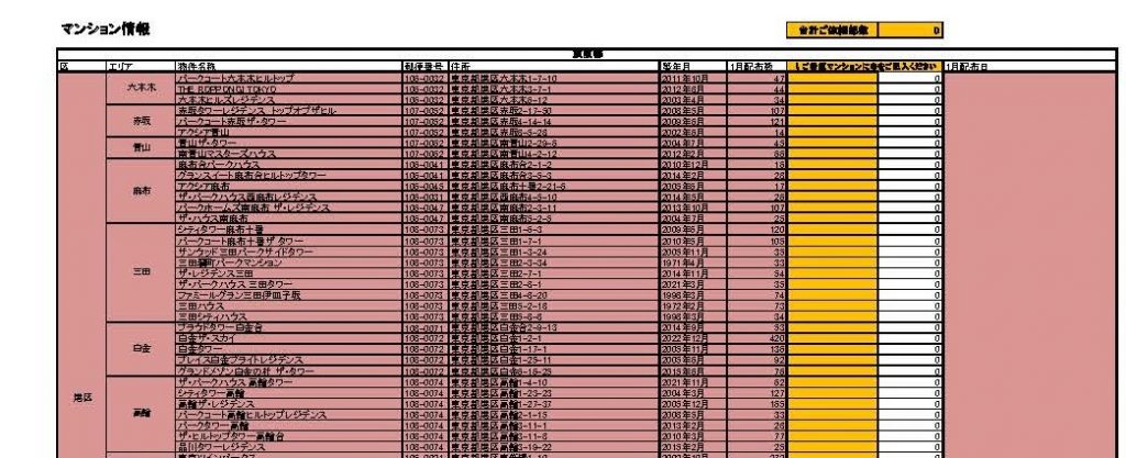 ・エリアやマンション名・戸数などが一覧で表示されている