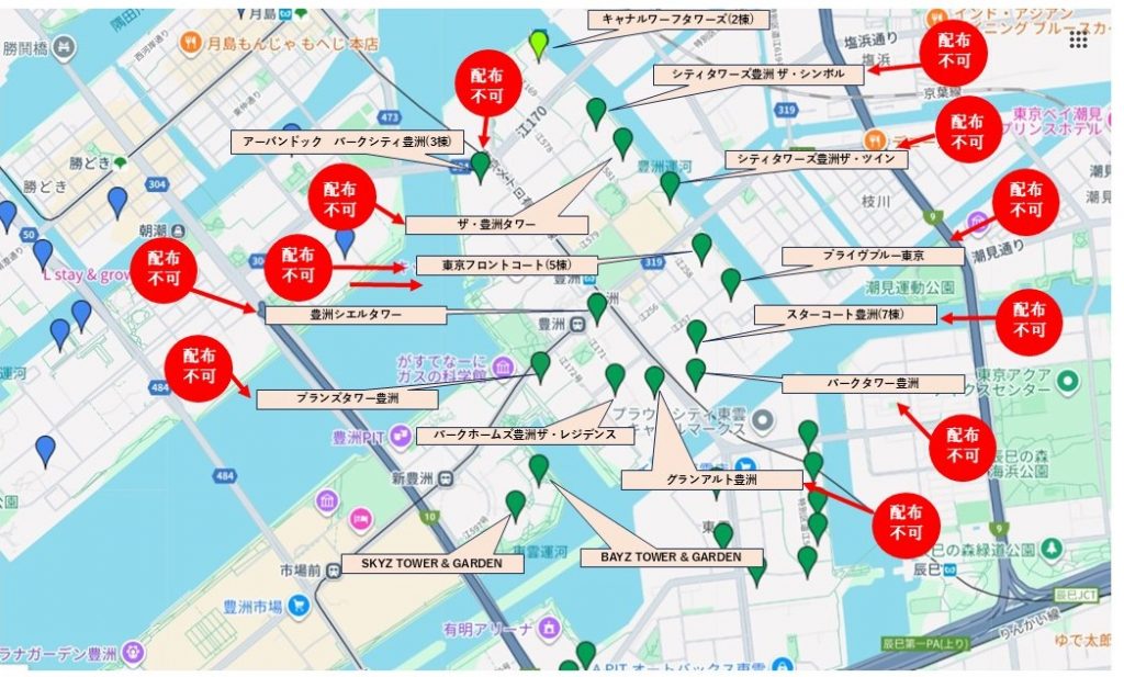 豊洲エリアでタウンプラス配布ができないタワーマンションは?